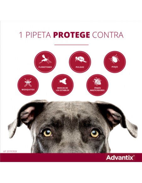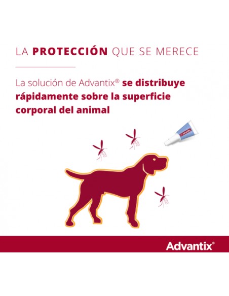 4 pipetas x 2.5 ml de solución con triple protección contra garrapatas, pulgas y mosquitos. De uso cutáneo.