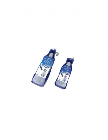 Bebedero de viaje con capacidad para 450ml. Contiene el sistema "push" para evitar que se pierda el liquido. Disponible en 3 colores.