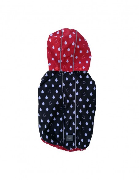 Impermeable para perros hecho con materiales ligeros y resistentes con capucha incorporada para que el perro se mantenga completamente seco los días de lluvia.